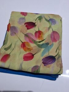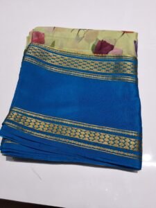 “Elegant crepe saree with kalamkari prints,perfect for festive and casual occasion.”